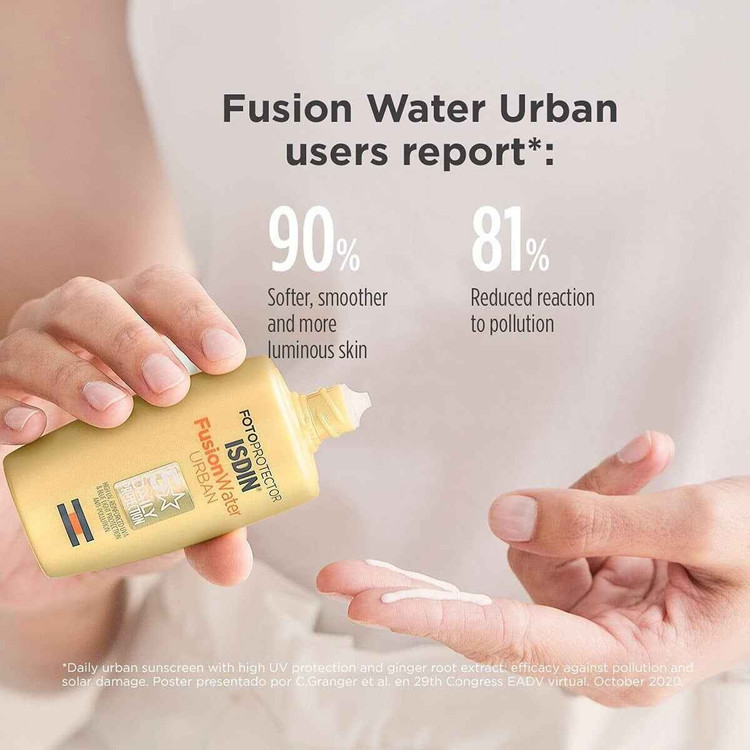 ضد آفتاب Fusion Water Urban ایزدین حاوی عصاره زنجبیل، است که به خوبی نقش یک آنتی اکسیدان بسیار قوی را ایفا کرده و اکسیداتیو ناشی از نور آبی را کاهش میدهد.
