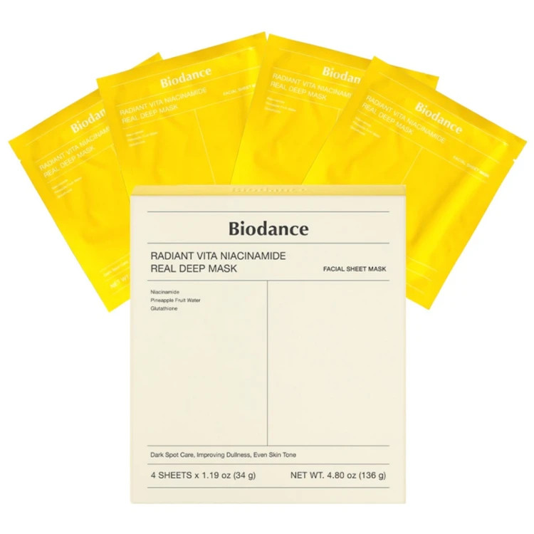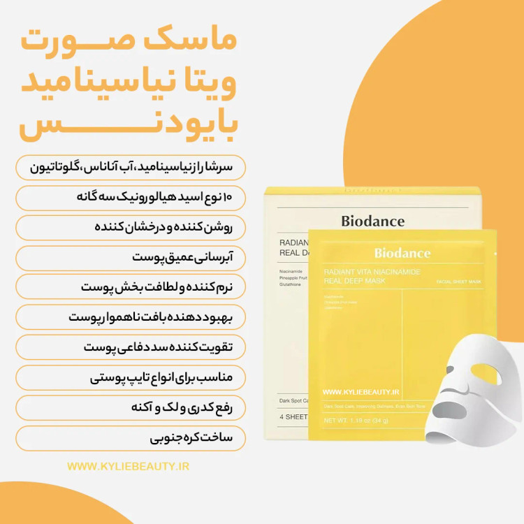 ماسک ورقه ای زرد ضد لک و روشن کننده حاوی نیاسینامید بایودنس کره ای