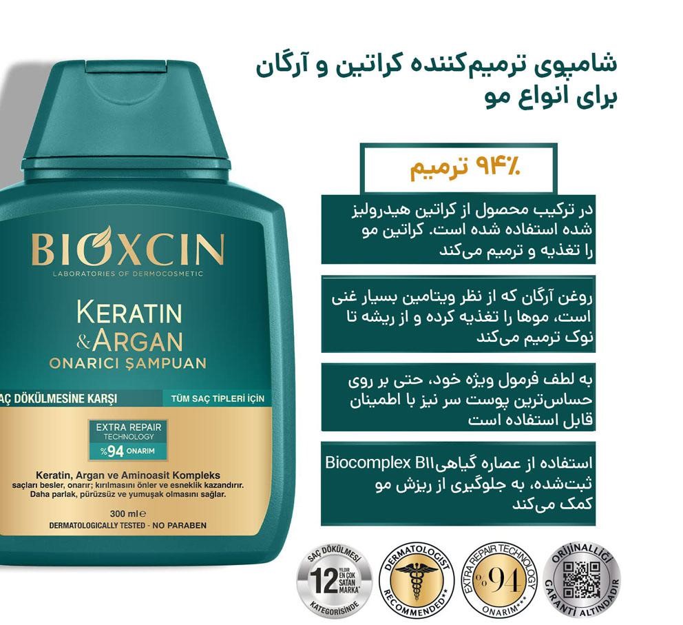 شامپو بیوکسین سبز ضد ریزش و ترمیم کننده حاوی روغن آرگان و کراتین
